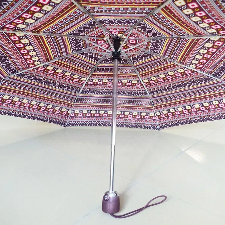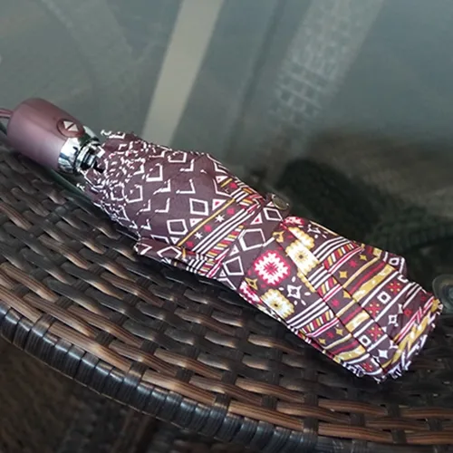 O guarda -chuva feminino impresso em estilo étnico combina a estética tradicional com a praticidade moderna, apresentando principalmente as seguintes características. Em primeiro lugar, em termos de projeto de superfície e padrões de guarda -chuva, os asiáticos tendem a escolher elementos estéticos orientais. A superfície guarda -chuva geralmente apresenta temas de estilo chinês, como flores de pêssego desenhadas à mão, peônias, pinturas de paisagem antigas, figuras do pátio e outros estilos de pintura de tinta, combinados com imagens clássicas, como pagodes e pavilhões. Alguns projetos incorporam os totens de pavões e elefantes do grupo étnico DAI, ou padrões de gelo simétricos da impressão de cera Buyi, mostrando diversas culturas étnicas.