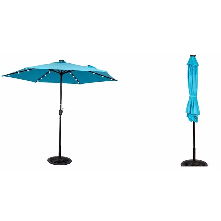 Este excelente guarda-chuva solar LED de luxo é perfeito para piqueniques, camping, playgrounds ou qualquer espaço ao ar livre. Ele não só oferece muita sombra para mantê-lo fresco nos dias quentes de verão, mas também luzes cintilantes embutidas criam uma iluminação romântica à noite. Deixe seus familiares ou amigos se divertirem a qualquer hora. O painel solar fornece uma luz brilhante que dura de 9 a 12 horas e as luzes LED proporcionam cerca de 15.000 horas de uso. Este guarda-chuva também possui um cubo de resina sólida, acoplamento de botão e caixa de plástico para maior durabilidade e facilidade.